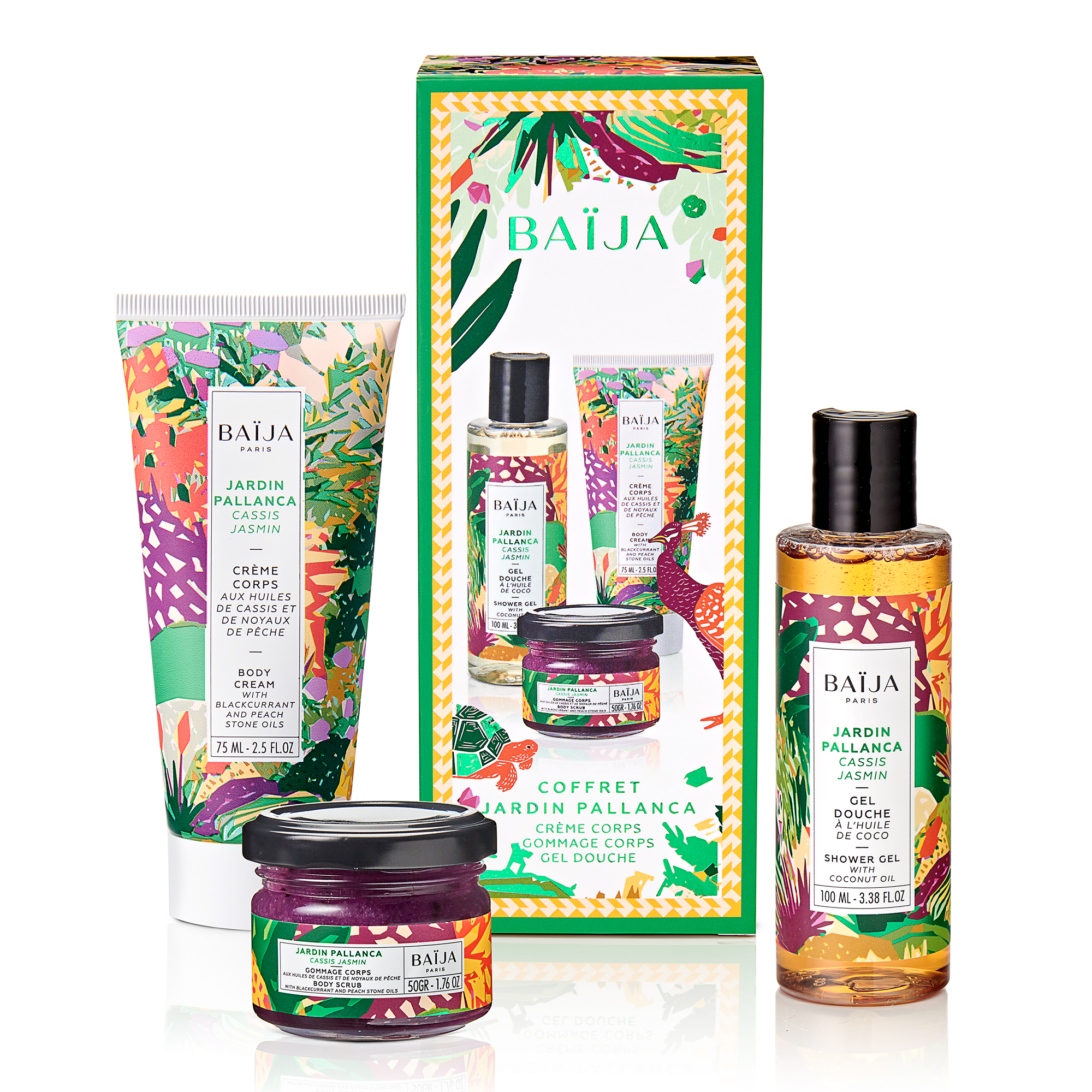 Envie d’un Happy Care Time? Plus qu’un soin complet pour le corps, le coffret Jardin Pallanca propose une véritable expérience de Spa@ Home. Son gel douche à l’huile de coco nettoie en douceur la peau. Son gommage unique à la texture fondante et sa crème onctueuse renferment une formule exclusive qui allie variété et concentration inédite d’ingrédients d’origine naturelle. Ce soin au toucher ultra-sensoriel dévoile ses notes élégantes de Cassis et Jasmin. Ce coffret se compose d’un gel douche, d’un gommage corps et d’une crème pour le corps.