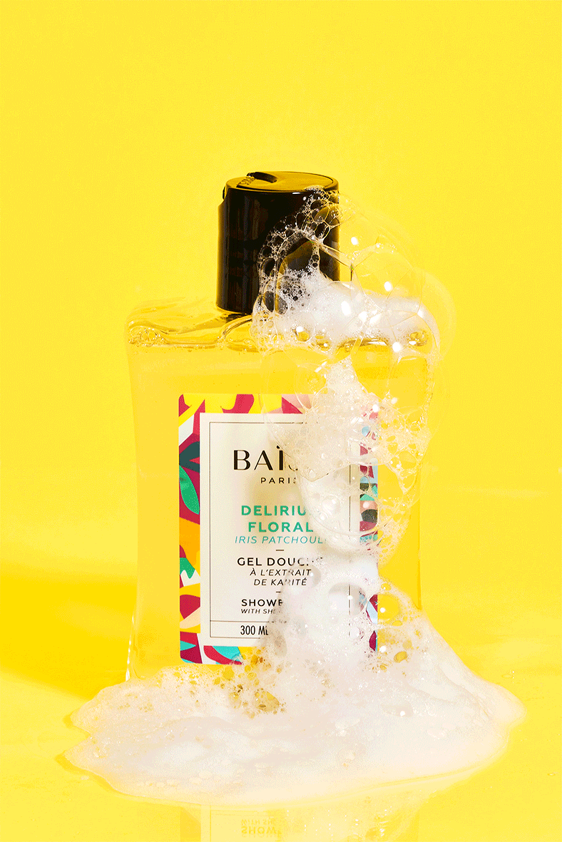 Appliquez sur votre corps humidifié. Massez et rincez soigneusement.