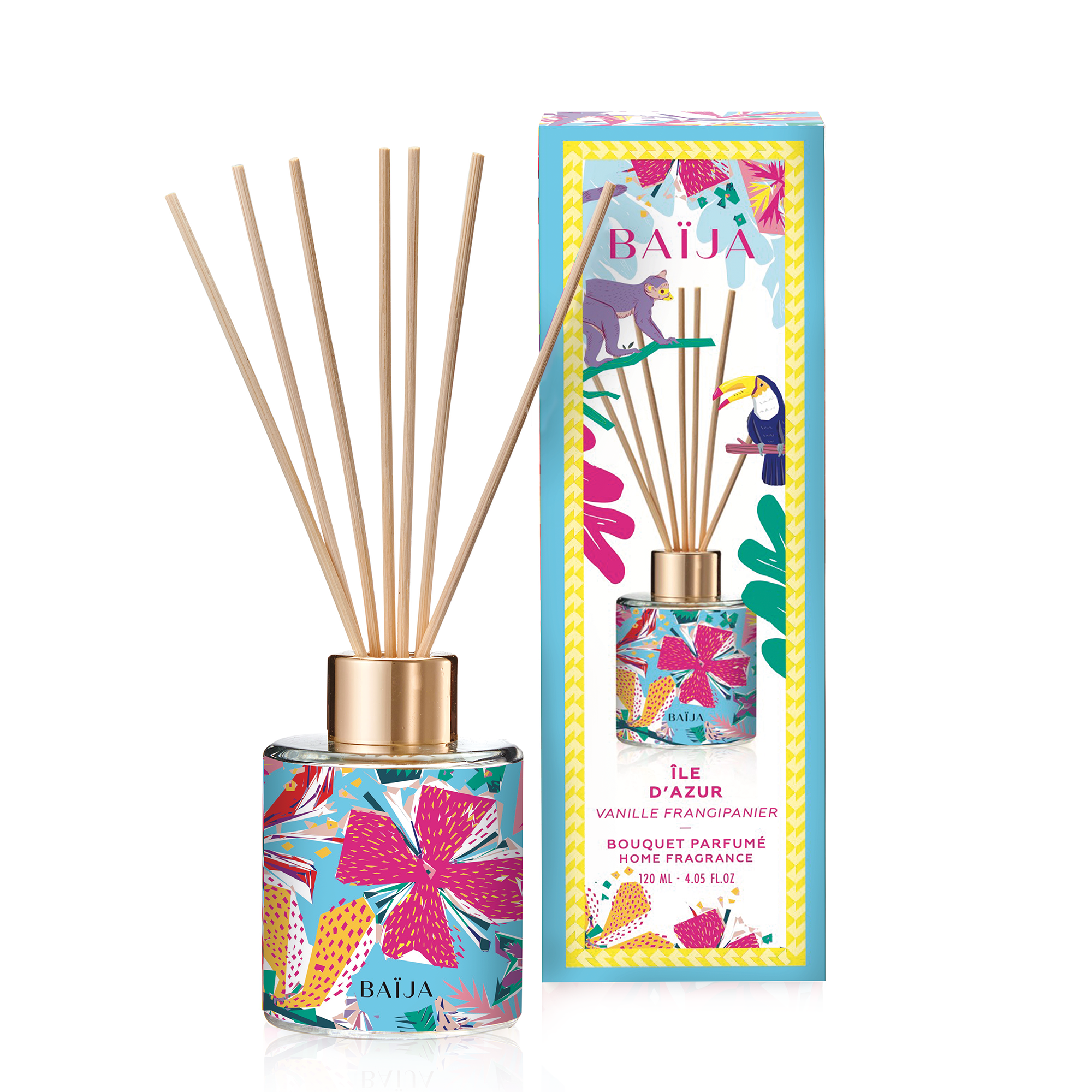 Ce coffret contient un flacon de parfum 120mlet 8 brins de rotin.